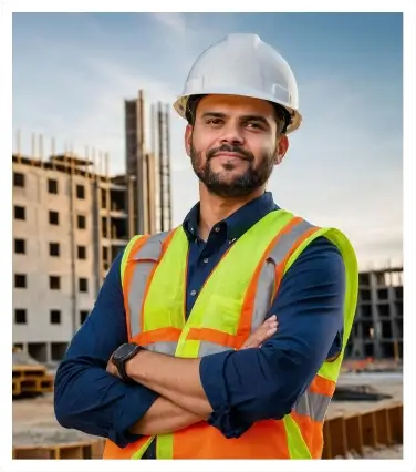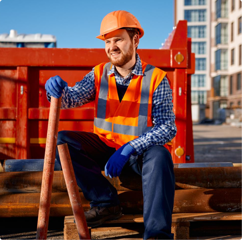 Assess the construction site and gather.
